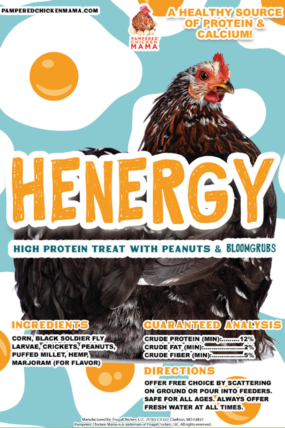 - Henergy - A textured treat featuring peanuts, hemp seeds, marjoram, BloomGrubs, crickets, puffed millet, and more!